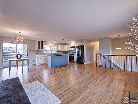 Beautifully remodeled bright and sunny bi-level in convenient South Longmont. Solid Oak HW floors on entire main level. New Samsung Black Stainless Steel appliances including Fridge, DW, MW and 5 burner glass top range. Granite c-tops. 2 fireplaces (1 wood burning). Window treatments included. Open floor plan. Huge lot with mature landscaping and large storage shed. Close to parks, schools and shopping. AC. whole house attic fan. Large deck for outdoor entertainment area.