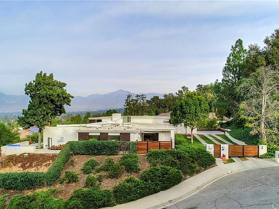 The pinnacle of upscale elegance is set high up in the hills of a quiet cul de sac in Smiley Heights in South Redlands. Experience panoramic views of the valley below and the dazzling sunsets from this impressive 5BR+office/5BA estate. This single-story timeless modern 3,911sf estate was completely remodeled down to the studs in 2011 by renowned Hollywood Hills architect, Marc Whipple. Seamless walnut flooring throughout gently guides you toward the Italian kitchen cabinets and vent hood by Poliform Vareena. There are 3 separate SubZero refrigerators including a wine refrigerator with 2 beverage drawers, Miele appliances including 2 dishwashers, 2 convection ovens with on/off timers, an induction cooktop stove with timers, and a plumbed coffee system. More than 50 feet of floor to ceiling oversized Fleetwood sliders offers unobstructed city and mountain views and access to truly seamless indoor/outdoor living. Gather friends and family around the gentle roar of the fireplace grounded by Italian natural stone surrounding. Play your favorite music through the built-in speakers that transition from indoors to outdoors. Functional and intricate landscaping line the yard with lush rolling grassy knolls highlighting the illuminated staircase. The lap pool and spa are dazzling and span almost the entire length of the house. The opulent owner's suite will become your next hidden escape with sliders accessing the backyard and an oversized glamorous closet. The attached ensuite exudes a spa-like oasis with hand-selected Italian stone, a deep soaking tub and huge shower. Each of the remaining bedrooms have been well-appointed with views of the surroundings and large closets. The entire estate is secured by IPE wooden gates and fencing, with a commercial-grade DKS Doorking intercom system for added security. Notable property highlights include custom-made blinds by the Shade Store with motorization in the main bedroom, floor to ceiling walnut interior doors, a whole house water filtration system, 2 separate HVAC zones, 160 plus square commercial-grade recessed lights, commercial-grade linear vents throughout and much more. This legacy estate is located just minutes from the Redlands Community Hospital, Loma Linda University, Burrage Mansion, and a convenient commute to downtown LA, the sandy shores of Long Beach, Huntington Beach, and Newport Beach. There is no better way to start the new year than by establishing a legacy with this truly special property.