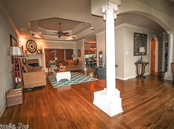 This gorgeous 3 bedroom, 2 1/2 bath home has beautiful hardwood floors, crown molding, columns, and more. The master has the double pan ceiling with recessed lighting and his and her closets in the bathroom. It also features a big bonus room that can be used as a playroom, man cave, or even a fourth bedroom. Call to see it today!