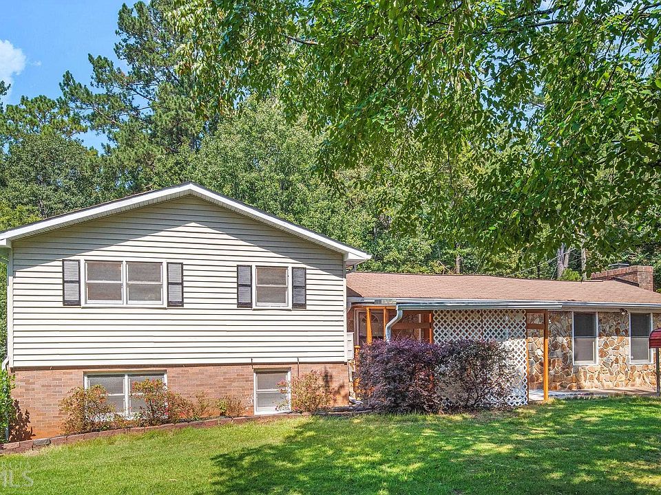 $5000 TOWARDS CLOSiNG COSTS OR RATE BUY DOWN!!! Welcome home to this recently updated, open concept home on over an acre in Newnan! This home has a recently updated kitchen to include breakfast bar, new stainless stove, breakfast area, and (3 family rooms!) one with gorgeous wood ceilings! This would be an amazing in-law floor plan or income producing property. 2 bedrooms and 1 bath located upstairs and 1 bedroom/1 bathroom located downstairs with a kitchenette and family room. New carpet and new LVP flooring throughout. Covered front and back porches and covered parking all on a 1+ acre level lot.