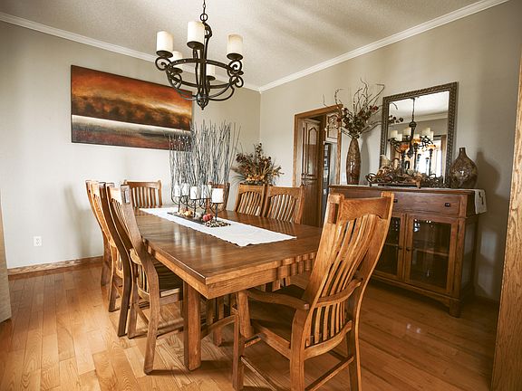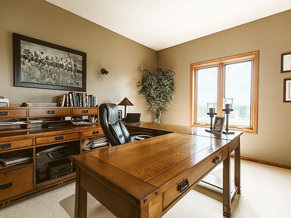 Welcome home to this CUSTOM 3805 square foot two story home situated on 2.197 acres surrounded by beautiful mature trees. Located just outside of Bismarck, you will be sure to enjoy the peaceful rural setting and a quick commute to anywhere in Bismarck. A covered front porch awaits you as you approach the home, perfect for enjoying coffee and conversation. Enter the front door you will be greeted with 9 foot ceilings, real hardwood floors imported from British Columbia and UTTERMOST light fixtures. To the right is an office with double doors and to the left is a large dining room perfect for hosting holiday meals. As you continue down the hall, you will enter the HEART OF THE HOME - a two story great room with 19' ROCK FIREPLACE situated next to the beautiful custom kitchen finished with granite countertops, BOHL custom cabinets, an additional prep sink and wine fridge. Next to the kitchen is a breakfast nook with a built-in custom bench. A laundry room with folding area and LAUNDRY SHOOT and a half bath finish this level. Upstairs you will find a well designed floorpan featuring 4 BEDROOMS on the same level. The master is HUGE and has a sitting area and ensuite bathroom with his and hers vanities, separate makeup area, shower and whirlpool tub. The other 3 bedrooms have custom built-in window seats with extra storage and share a bathroom with dual vanities and private shower area. The WALK-OUT basement is setup for all your entertainment needs. Enjoy a large rec room, wet bar, 3-SIDED FIREPLACE, and space large enough for an official size pool table. The 5th bedroom, full bathroom, HUGE storage room and mechanical room complete this level. There is also an oversized 3 stall garage and room to build a shop if desired. From the 3 paned Pella windows with custom drapes, to the triple zoned heating system, septic tank with 2 drain fields, and all concrete driveway this home is truly one-of-a kind! Contact your favorite agent for a private showing today!