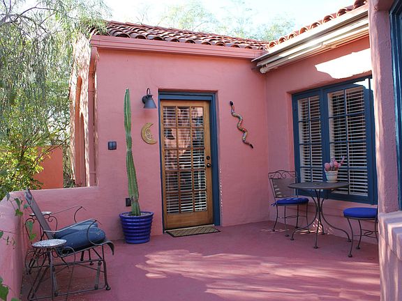 Truly exceptional, private, beautifully furnished 3 bedroom / 2 bath classic Spanish style home just blocks from the University; hardwood floors, coved ceilings, and an Arizona room with a spa; spacious kitchen with water filtration, dishwasher, garbage disposal, Maytag washer and dryer; central AC/heating, security system, garage/carport; serene courtyard with mature desert vegetation, fountain, electric awning, large back yard with fruit trees, and rear porch -- all enclosed in a 6-7' wall for privacy; close to Banner and 8 blocks from main campus; pets negotiable. THIS HOME IS FURNISHED, PLEASE FILL OUT THE ZILLOW RENTAL APPLICATION IF YOU ARE INTERESTED IN VIEWING THE PROPERTY. This home is available for a 6 month or a one-year lease. Shorter term rentals are not an option. Please submit a Zillow rental application as a first step. Thank you.