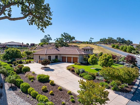 Tuscan estate property within Santa Ysabel Ranch. This 4666 +/- square foot home offers four bedrooms and four bathroom along with a three car garage on 1.86 +/- acres. You enter into the marble tile foyer and into the main living room with custom architectural elements and details throughout. The home centers around the gourmet kitchen with granite countertops, stainless steel Thermador appliances, island with prep sink, stove top and bar seating, and flows onto the dining area with seamless flow to the outside patio. The luxurious primary bedroom is located at one end of the home for privacy is perfectly appointed with a fireplace, vaulted ceilings, marble tile in the bath, custom soaking tub and walk-in shower, separate vanities, attached dressing room and walk-in closet. The property is landscaped front and back perfect for entertaining and relaxing within the beauty of Paso Robles Wine County. Oversized lot allowing for additional plantings or outbuildings. Santa Ysabel Ranch offers privacy and security, tennis courts and walking trails within one of the premier communities within San Luis Obispo County. Come take a look today.