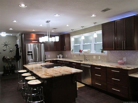Truly one of a kind. Everything has been completely updated. Custom cabinets, cherry finished self closing drawers, touch less delta faucet, exotic granite counter tops , Oversize pantry ,hardwood floors, new light fixtures, french doors leading out to a amazing living area, and split bedroom design. This is a beautiful home !!!! Sitting on .56 acre with large mature trees .