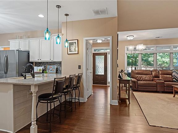 Welcome to the heart of Roswell—where lifestyle, convenience, and comfort converge! Just a short stroll to vibrant Canton Street and steps from the exciting new Southern Post development, this gated, low-maintenance residence offers the perfect lock-and-leave lifestyle. Liberty Lofts and Townhomes is the best kept secret in Roswell. Tucked away from the crowds and cars, it is such a peaceful place to live. Step through the door and into a sunlit, open floor plan with the primary suite on main, direct garage access, and new Andersen double-pane windows throughout the home, providing energy efficiency and sound reduction. A soaring great room and bright dining area flow into a renovated kitchen with quartz countertops, a single level island, Bosch dishwasher, dual wall ovens, and convection microwave oven. Bamboo flooring runs throughout the home (no carpet in sight) for a sleek, modern, and allergy-friendly touch. The primary suite is a retreat in itself, featuring a spa-like bath with a zero entry shower and a walk-in closet with ample storage. Upstairs, a large loft, dedicated office, and two oversized bedrooms share a beautifully updated bath with marble flooring. Don’t miss the two walk-in attics, perfect for seasonal storage. This gem has been freshly painted and updated with a convenient sliding laundry door, outdoor lighting, whole house water filtration and an upgraded HVAC with blue light treatment and 5” filters for pristine air quality. The generous front porch provides a relaxing outdoor living space, the perfect spot to watch a frequent visiting barred owl! Life at Liberty is unmatched! Enjoy neighborly front porches, wide green spaces, a sparkling pool, tennis, and a fitness center. HOA fees cover exterior maintenance, water, sewer, trash, and more, simplifying life so you can spend weekends exploring breweries, dining, and boutiques just outside your gate. With its unbeatable location, thoughtful upgrades, generous floor plan and great price point, nothing compares to Liberty. This is your chance to secure a truly special home in one of Roswell’s most desirable communities.