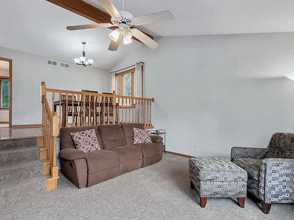Immaculate & spacious low maintenance 3 Bedroom, 2 1/2 Bath, Partial Finished Basement & on oversized lot in desirable Farmingdale Village. Sun filled, open concept Stratford model offers spacious living room with volume ceiling & ceiling fan open to formal dining room with wood beam, hardwood flooring and new light fixture. Large kitchen with stainless steel appliances & eating area open to oversized family room with brick floor to ceiling fireplace, ceiling fan & sliding door leads to brick paver patio. First floor powder room with raised height vanity. Convenient 1st floor laundry room/mud room with washer/dryer, utility sink, cabinets, storage area and exterior access door. Wide staircase leads to 2nd floor bedrooms. Expansive Master Suite with dual closets, private dressing area, walk-in shower & ceiling fan. Spacious 2nd & 3rd bedrooms with hardwood flooring & ample closet space. Finished lower level great for home office, recreation room or playroom, huge storage area & additional concrete crawl space. Attached 2 car garage. Neutral decor and most rooms have been freshly painted. Beautiful private yard with mature trees, large brick paver patio & storage shed. Park just down the street. Prime location to expressways, convenient to shopping, dining & Top rated Park District & Lemont Schools-Blue Ribbon winner-Lemont H.S. All major work has been done: Roof-4 yrs, Windows-varies 4-8 yrs, Furnace-6 yrs, CAC-5 yrs, hot water tank-11 yrs. Great location & well maintained home-Ready for Move-in!