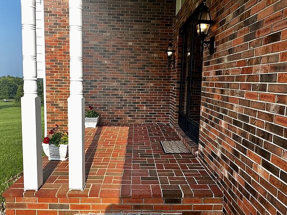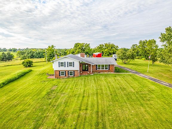 central ky farm livin w/ a updated 4 bed 3 bath home on 9.3 acres with a in-ground pool and diving board? Soon as you come thru the foyer you're greeted with a spacious living room and a sitting room with a wood burning stove. Kitchen with granite countertops, breakfast bar, beautiful cabinetry, stainless steel appliances including a double oven a huge Dining Room. Walking up about 5 steps you will find the primary suite, powder room, bath, and walk in closet as well as a few more additional closets.You have to check out the private deck that overlooks your in-ground pool. 2 additional bedrooms, 2nd full bathroom more additional closet. going down the spiral staircase to the basement your met with a huge family room, the 4th bedroom, a huge 3rd bathroom that combos with your laundry room. There is plenty of storage in this room as well and shelves that is great for storing all your canning essentials. Outside has an oversized 2 car garage, 2 storage buildings, equipment shed, several bearing fruit trees. Road frontage on 2 roads. This could be separated and sold off as a nice building lot with the water meter and electric already on site. 1 yr home warranty is being offered.
