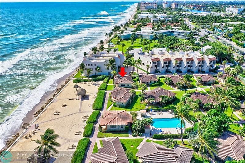Private beach house that is surrounded by the tropical beauty of South Florida. This villa is steps from the sand and has 300 ft of private beach. All you see is OCEAN and SAND! The community has a heated pool and a dock on the intracoastal for drop off and pick up. Live the beach life year round, use it for a vacation or rent out. Great investment opportunity as the office rents out for the owners and 100 percent of rental goes to owner. All impact glass.
