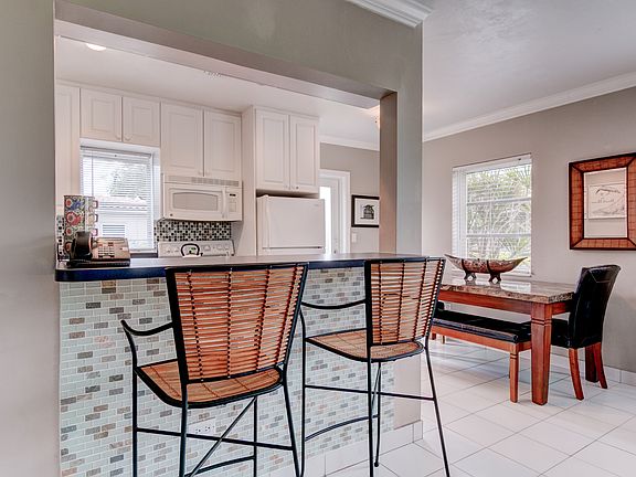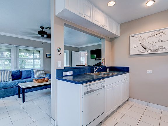 Unique and rare buying opportunity. Operated like a resort. Owner receives 100% of rental income OK to lease 1 day, 1 week, or monthly! Tastefully Decorated-sleeps 6. Use full time or for vacation and let the on site manager lease for you to cover your expenses. Daily house keeping, private beach & pool. This villa is well situated in complex. Private! Park at your back door. Clean & Bright! High impact front windows. Watch boats & sunset from Tiki HUT on ICW just steps from your door