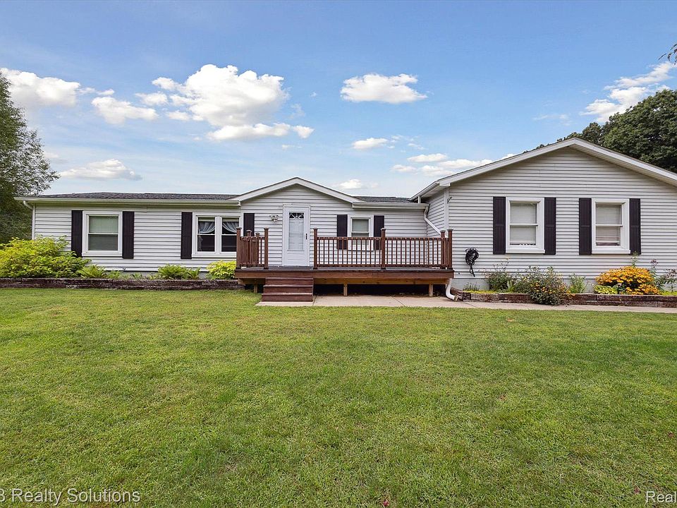 Very nice 3 bedroom 2 bath home sitting on 10 acres. Updated throughout. Large kitchen with granite countertops and stainless steel appliances. Main floor laundry. Primary bedroom with its own bath. Finished basement with cozy great room. Insulated and finished attached garage. Enjoy the wildlife on the back deck overlooking the secluded large backyard. Trails weave through the woods around towering pines. Have the best of both worlds. Country setting yet paved road with natural gas located conveniently between Lapeer and Davison. Just minutes from I-69. Come check it out!