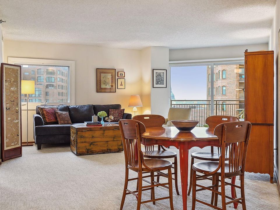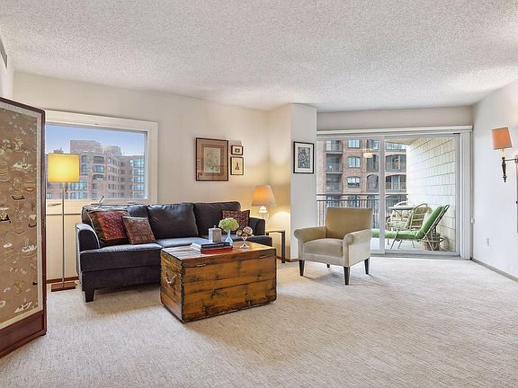 Great urban living in this 16th floor condo with balcony views looking west over Loring Greenway. The great room combines large living and informal dining. When choosing to cook instead of dining at one of the dozen+ restaurants within blocks of your unit, appreciate the kitchen's pocket door to keep your prep space & sounds separate. Owner's suite has a private bath with tub/shower and vanity area/double closets. Bedroom 2 has been opened up, used as a den. Several storage closets in unit and free laundry on same floor. Near U of St. Thomas,1225 LaSalle offers updated common spaces with rotating art exhibits, community room/reading lounge, exercise room w/sauna, plaza green space, 24-hr desk attendants/professional mgmt. Downpayment/closing cost assistance available. The City awaits - park in your heated garage stall and enjoy walking to so many Downtown amenities, arts & entertainment, grocery, notable restaurant and retail options here on the edge of Loring Park.