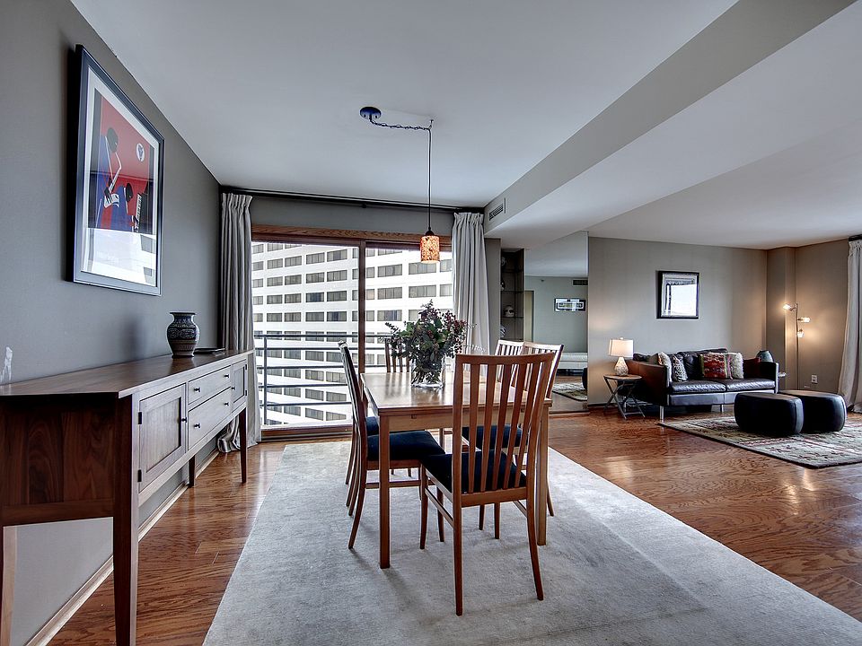 Stunning corner unit w/beautiful panoramic views & a great downtown location. Beautiful hardwood floors, smooth ceilings, updated kitchen & bath, 2 balconies & new carpet in bedrooms. 24 hr staffed reception, heated pkg, expansive courtyard. MUST SEE!