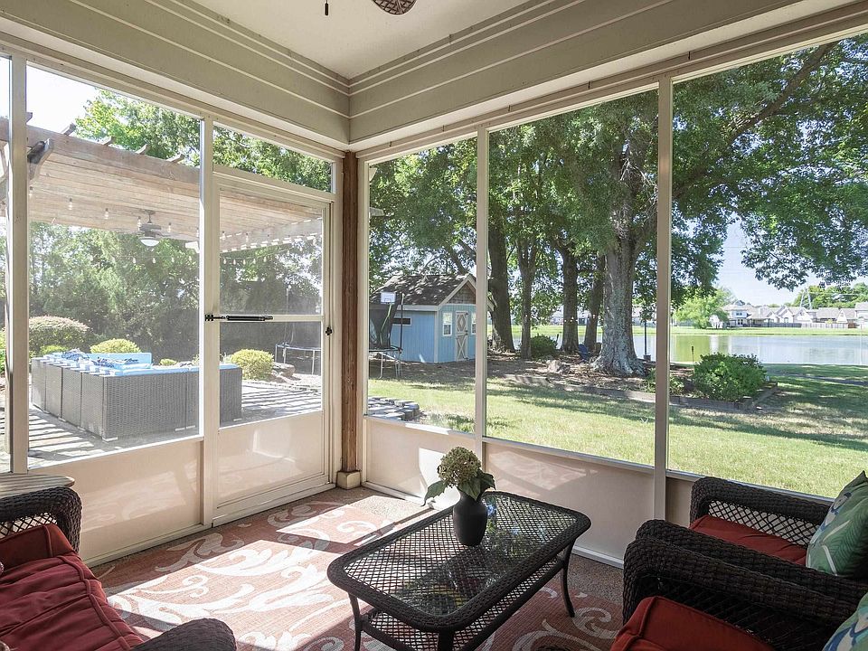 NEW PRICE $400,000!! House Appraised for $435,000!! Do you want to feel like you are on vacation every day? If the answer is Yes, you found your home! The sunset over the water view is mesmerizing! You can enjoy the lake view from your screening porch, or under your pergola, or around the firepit area. Hot Tub! 5 Br, plus the bonus rm, 3 gorgeous remodeled bathrooms, specious kitchen open to hearth rm, formal dining rm, plus den! 3 car garage! Just down the street from the Macon-Hall Elementary.