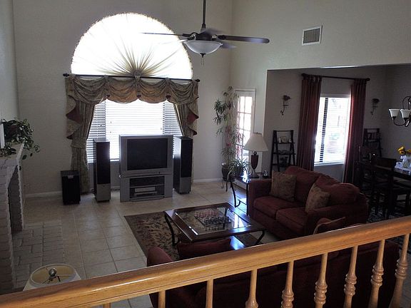 Cul de sac location in College Heights! Front porch has sitting area & security screen dr. Raised entry gives view of spacious living & dining rms.Main level has tiled flooring. Storage area under stairs.Living rm has barely used fireplace, crescent window,custom drapes, & French dr to patio.Formal dining rm has built in China cabinet.Kitchen has large pantry & built in desk.Newer appliances & wine cooler.Tile counter is open to breakfast nook;French Drs to back patio.1/2 bath for guests off laundry rm;bank of storage cabinets.Upstairs is carpeted with more cabinets on landing. There are 2 guest bedrms & full guest bath.Spacious mstr suite has walkin closet & dr to petite balcony. Mstr bath has closet & lge shower.All cabinets recently refinished. Back yard is graveled with several shade trees. Ground mounted cooler on north is about 3 yrs old.