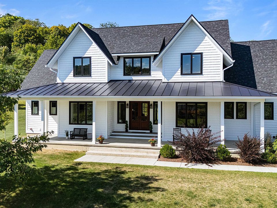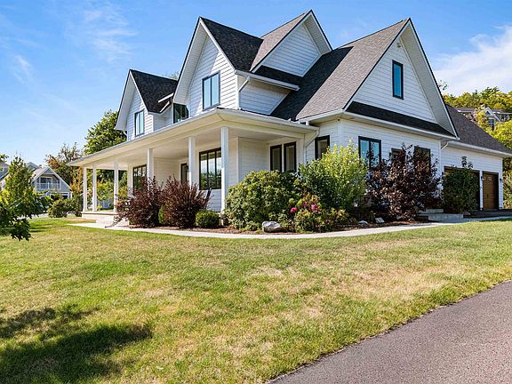 This stunning modern farmhouse blends timeless design, thoughtful craftsmanship, and luxury upgrades in the highly desirable Outer Bay at Marble Island. Enjoy evenings on trails, mornings kayaking, afternoons by the pool, and weekends exploring Lake Champlain. With 3 lake access points, pool, tennis & pickleball, and a public marina, the community offers the perfect balance of recreation and relaxation. Every detail of this home was designed for both beauty and function. A long driveway leads to a welcoming front porch and grand Mahogany French doors. Inside, 10’ ceilings, a soaring great room, and Marvin black casement windows fill the open layout with natural light. The chef’s kitchen showcases a 12’ island, quartz counters, double-stacked cabinets, LG black stainless appliances, double oven, gas cooktop, and a walk-in pantry with 2nd fridge. The 1st-floor primary suite offers a walk-in closet, spa bath, 2-person shower, soaking tub, dual vanities, and porch access with ceiling fans and gas hookup. A 2nd en-suite for guests, while an office, mudroom, and laundry provide everyday convenience. Upstairs, a loft overlooks the great room and connects to 5 more rooms, including a 3rd en-suite, the 4th bedroom with shared bath with 2 flex rooms, and a private bonus suite with its own garage entry. Extras include dual-zone HVAC system, copper piping, whole-house generator, heated/insulated garage, Hunter Douglas window treatments, and a 9’ basement ceiling with bath rough-in.