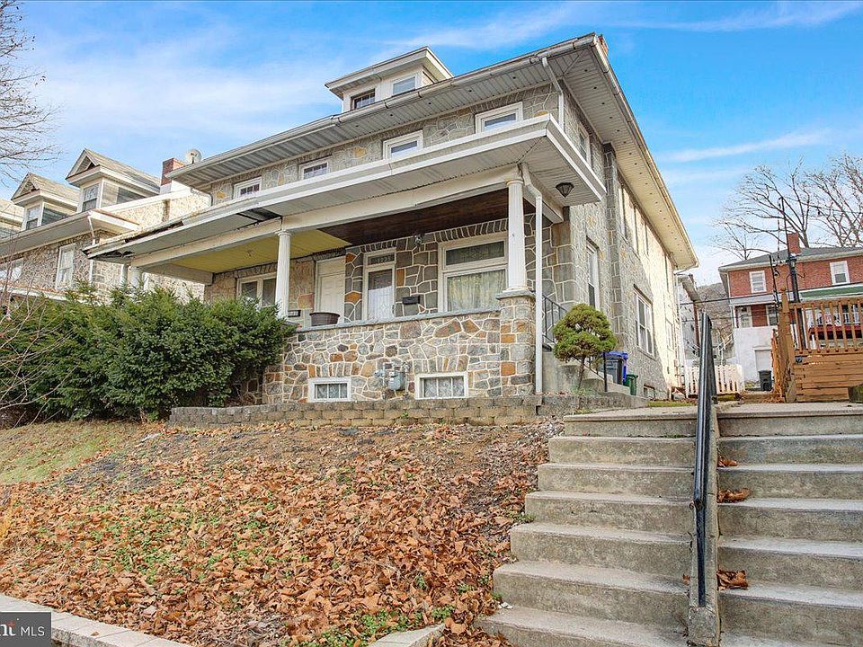 Large Northeast Reading brick and stone semi-detached home in great location. 5 bedrooms, 1.5 baths, ornamental fireplace, replacement windows, fenced in yard. Newer carpeting, spacious eat-in kitchen, newer hardwood flooring, fenced in yard. Enter to large living room, separate dining room, follow to very large kitchen with rear yard access. Second level features three individual bedrooms and a remodeled full hall bath. Third level attic is extra nice and very large, and could serve as two more bedrooms. Lowel level is one you must see. Additional half bath and wonderful storage space. This is a terrfic home with a really nice floorplan for those wanting their own space.