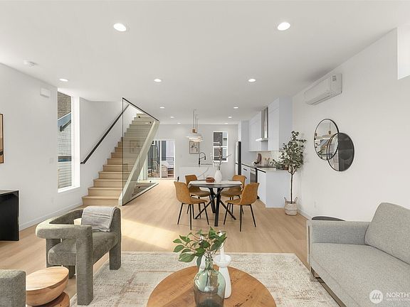 Greencity Homes is thrilled to introduce Riven: a collection of 4 beautifully crafted homes nestled in the perfect spot between Wallingford/Green Lake. This sophisticated 4-bed home boasts an attached CARPORT, open concept living w/ huge deck off the kitchen, and an elevated primary suite featuring a 4-piece bath & walk-in closet. The sunlit living level is perfection with an entertainment breakfast bar and luxe appliances. In an unbeatable location, Riven places you steps away from beloved eateries such as RockCreek, Paseo, Blue Star Cafe, Murphy's Pub, Woodland Park & Zoo, & Green Lake. Enjoy effortless commuting with quick access to Hwy99 & I-5, + proximity to bustling neighborhoods including Ballard, UW, U Village, Green Lake & Fremont.