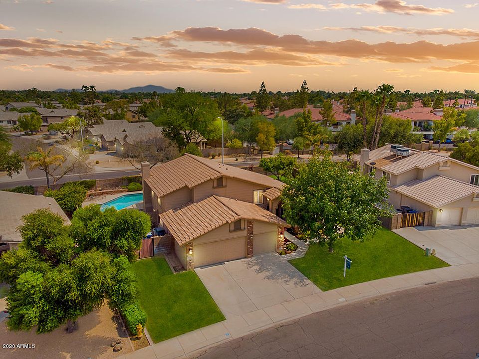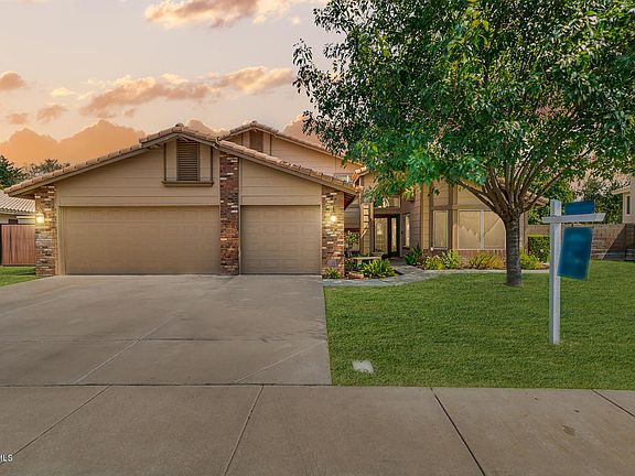 Prepare to be amazed! Come see this highly remodeled property now for sale in desirable Chandler! Providing great curb appeal, beautiful grassy front landscaping, RV gate, and 3 car garage. Welcoming interior gives you 5 beds, 3 fully remodeled baths, Versailles pattern tumbled travertine, plantation shutters, and a wood burning fireplace. The show-stopping eat-in kitchen is a chef's delight, with no expense spared. GE Profile stainless steel appliances, Stone Henge granite counter-tops, Stone Creek cabinetry with crown molding, island with breakfast bar, and more. Impeccable master suite has a private balcony overlooking the grand backyard, luxurious full bath with separate tub, step-in shower, walk-in closet, and dual sinks.