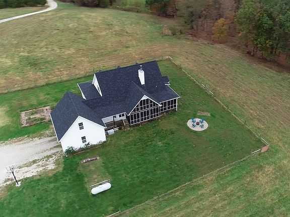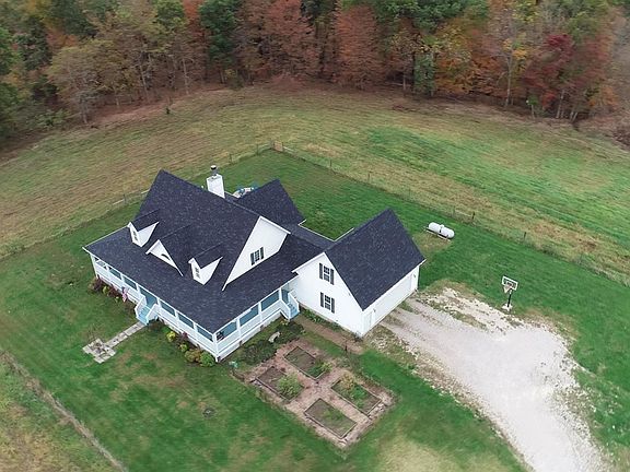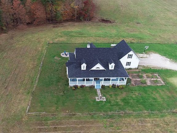 Come see this modern farmhouse nestled on +150 acres! It is private with 1/2 mile driveway. 5 BR/4 bath with 3000+sqft above ground, full basement, and bonus room over garage! Wraparound front porch. Hardwood floors/carpeting and insulated double-pane windows throughout. Huge great room features 18' cathedral ceiling, wood-burning fireplace, and stunning back yard views. Eat-in kitchen has beautiful cabinets accented with farmhouse sink, all new stainless appliances, and downdraft glass-top range. The main level master suite features French doors to screened back porch, rain shower, whirlpool tub, separate vanities, and custom walk-in closet. Bedroom/office has custom closet and double French doors. Two more large bedrooms upstairs each with two closets. ¾-acre fenced area around house with fantastic views. Basement area features family room/man cave with snack bar and more! Huge screened-in porch, acres of beautiful organic meadows plus woods full of turkeys and deer, 3 ponds, one spring-fed. Back-up generator, fiber optic connection to the house, dual heat pumps, 18' x 10' tack house, raised-bed herb garden, fire pit, basketball court, and chicken run. Large concrete parking area in front of garage, over 40x60’. Be sure to check out the virtual tour! Ask agent for description attached.