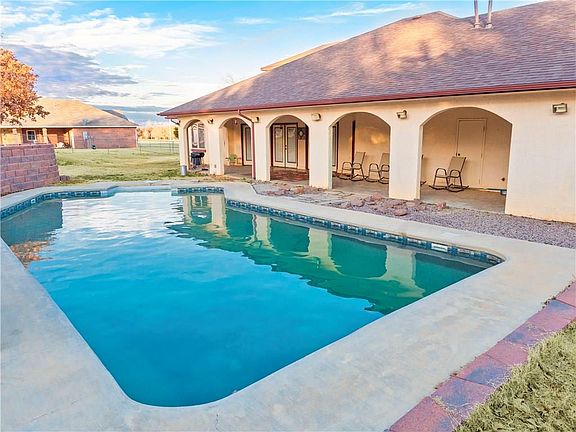 Amazing Estate located in the heart of Choctaw! 2.5 Acres with a beautiful salt water pool (18x41) This home is constructed with concrete walls/ Styrofoam block system; which means great utilities! New ceiling fans, plumbed for radiant heat floors, travertine tile, whirlpool tub in (2nd bath), built ins in every closet, stained concrete floors, concrete counter tops, Jenn air appliances! The kitchen is built for a chef! The pantry is unbelievable! Master bath has vaulted ceilings a huge whirlpool tub, shower panel in master shower, double sinks and the master closet is the safe room! Huge covered patio that overlooks the pool and fire pit. Unfinished sun room that was used as a gym! You have to see it to believe it! Call today for your showing!