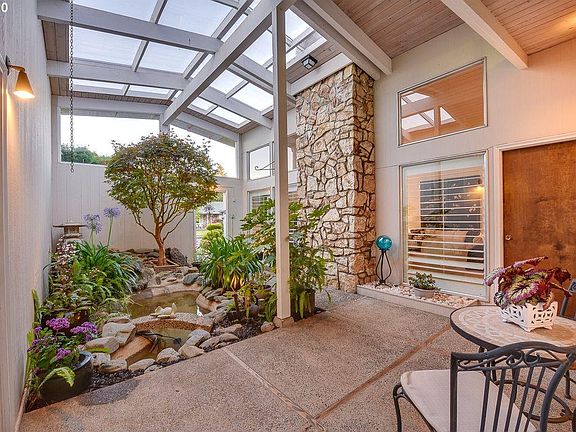 Fabulous Mid Century Modern in coveted Regency Park. If you like architecture, you will love the Indoor atrium in this Rummer Style designed home. 3bed, 2bath, vaulted ceilings, formal living & dining. Kitchen and eating area seamlessly connect to the family room. A/C, indoor laundry, covered patio, grassy yard and RV parking. Near the Glendoveer Golf Course 2 mile walking trail. Regency Park is a hidden gem of only 6 streets. By appointment only!