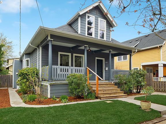 Adorable in Alberta Arts! Fantastic opportunity to live in one of the best neighborhoods in Portland. Located on a quiet street just one block off dynamic Alberta St., this charming farmhouse style home features a perfect Portland porch that spans the front of the home- perfect for relaxing and chatting with neighbors. The front door opens to a foyer off the bright and open living room and dining room with their original fir floors. The kitchen is newly updated and the main floor includes a bedroom and bathroom. The cozy upstairs has 2 bedrooms and a full bath. The finished basement with an exterior door offers a flex space for a family room or home office. The fenced in backyard is private and a great space for pups and gardens and backyard hang outs. With a walk score of 93 and a bike score of 100, the best of Portland is just steps away. [Home Energy Score = 2. HES Report at https://rpt.greenbuildingregistry.com/hes/OR10237084]