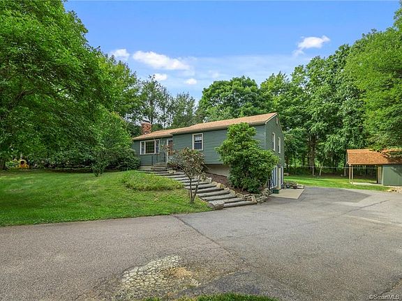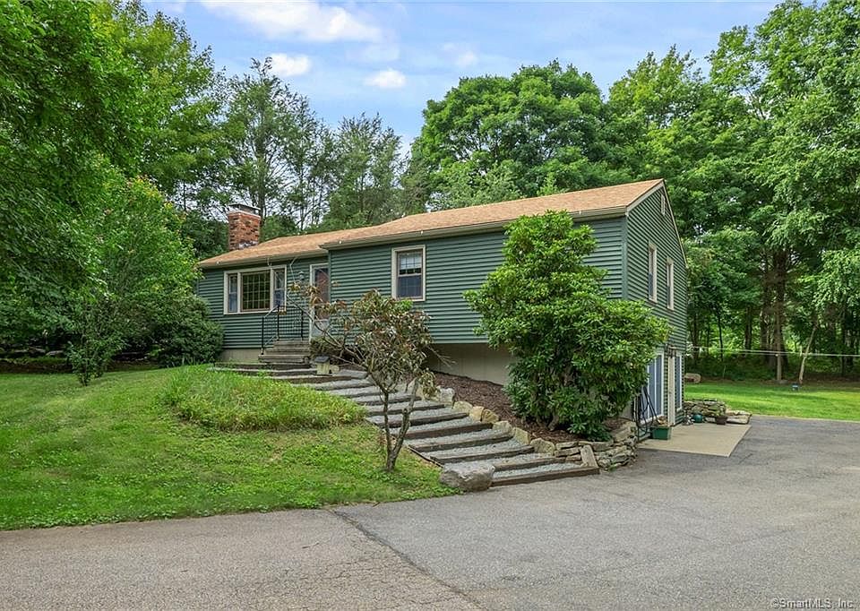 Hard to find 3 bedroom ranch style home located in an ideal location Beautiful New England quality built & move in ready. Situated on a lovely private larger lot surrounded by trees and stone walls, you will enjoy all that this home offers Nice solid hardwood floors throughout, eat in kitchen & bright sunny updated windows. Updated bathroom located centrally in the home. The kitchen features a large slider that connects to the oversized covered back deck. Great home for outdoor entertaining with a flat back yard & fire pit. Paved driveway, public sewer, fenced in area for pets, updated roof/chimney cap & two sheds for extra storage. The larger shed is great for a mechanic/hobbyist. The lower level is finished with a half bath & full walk-out, an amazing FLEX space with endless possibilities PERFECT for someone looking to work from home or have a home business with two large areas, a half bath & a large paved parking area. IDEAL for a rec room, playroom or hangout space. Convenient for a possible in-law, converting the half bath into a full & ground level living. You could even choose to convert back to garage space The location of this home is super convenient Across the road you will find a beautiful small town grocery store/gas station, restaurants & more-though you barely know they're there Also located close to beautiful Oxoboxo & Gardner Lake, a farmer's market & highways for easy commuting. This home offers it ALL