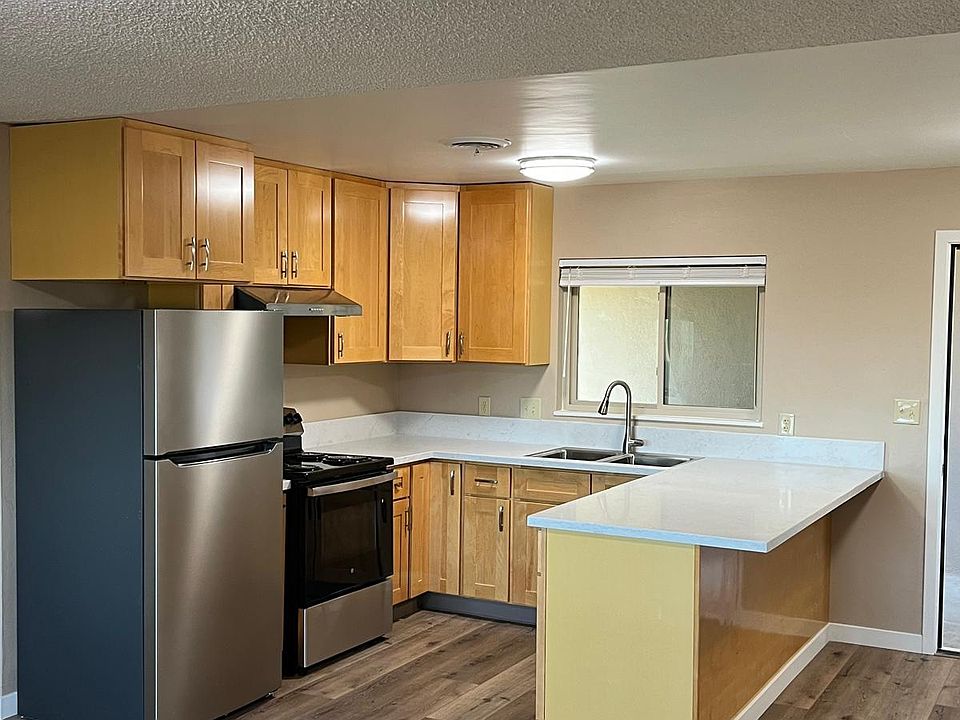 Beautifully remodeled 2BR/1BA upstairs end unit with private balcony area. All new kitchen with shaker maple self closing cabinets, quartz countertop, new appliances, new LTV flooring, 2" window coverings, interior doors & hardware. Forced air heating, excellent location, close to great schools & shopping. Attractive inner courtyard, covered parking space with storage area. Laundry room. Owner pays for water and trash. Tenants are responsible for paying PG&E. No smoke or pets allowed.