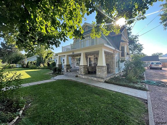 Fabulous 4 bedroom, 2 full bathroom, spacious 2 story farmhouse in Lincoln Park! This exquisite home features an eat in kitchen with granite island, tiled countertops, stainless steel Frigidaire appliances, custom cabinets with glass inserts, modern lighting & pantry. Expansive formal dining & foyer spaces. Both the family room & living room have brick accented wood burning fireplaces, one includes wood burning insert with blower. Main level master suite has bonus sitting area & adjoining master bath with clawfoot bathtub/shower. 3 bedrooms & full bath with tiled shower upstairs. Lots of crown molding, gorgeous woodwork built in drawers & bookshelves. Main rooms have hardwood floors. Tiled bathroom & laundry room. Large laundry room with access to backyard, doggie door & built in bench. New carpet in the 2nd family room. .67 acre lot mostly fenced & beautiful mature landscaping including plush grass, various flowers, pear, apple, peach & mulberry trees. If you love to garden this is the perfect place featuring raised garden beds, 8 zone automatic sprinkler system connected to the insulated well, 6 shares of Deweese irrigation water and city water!! Front covered porch has stamped concrete & stone accents. Other amenities include a 2 car garage with work area, chicken coup which is replica of house, large dog kennel, large shed, some high efficiency UV windows downstairs, upgraded hot water heater & high efficacy heating/ central air system which was installed last year!