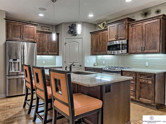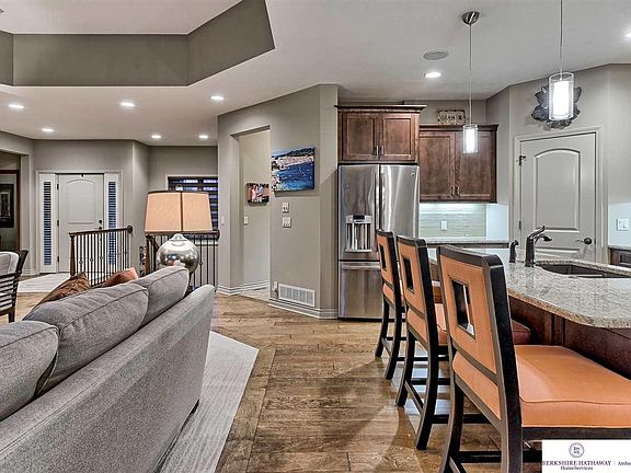 Enjoy carefree living in one of Omaha's premier gated , villa communities. Custom built Whit Smith ranch home with 4 bedrooms and 3 bathrooms. Walk into an open floor plan with beautiful dark wood floors, gas fireplace, stainless steel appliances and a warming drawer. The lower level features a large wet bar, open family room, a full bathroom and 2 additional bedrooms. Enjoy quiet evenings on the patio with the gas fire pit and waterfall feature surrounded by lots of tree's and shrubs.