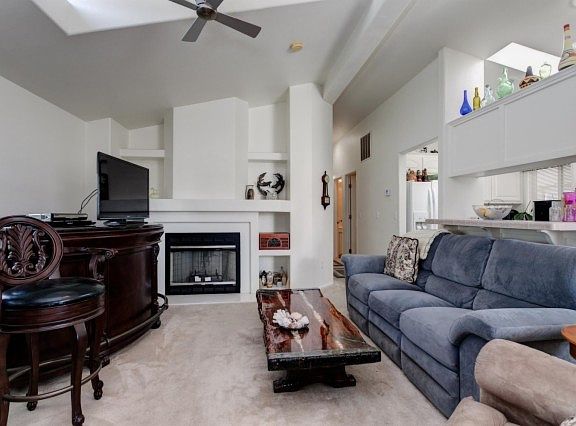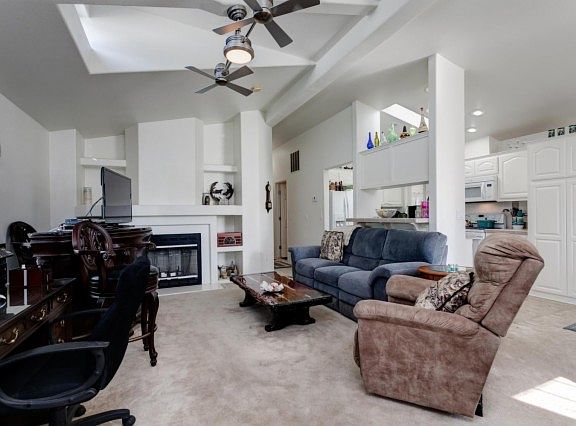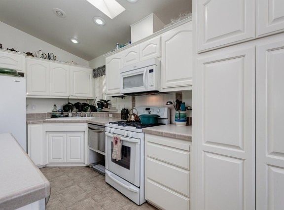 This lovely newer home located in the El Sereno 55+ park in Ojai is one of the most architecturally interesting you will see. Cathedral windows, skylight, & solar tubes allow for great natural light throughout. High vaulted ceilings and built-in shelving enhance very spacious, open-concept living area. Large master bedroom with en suite bathroom.
