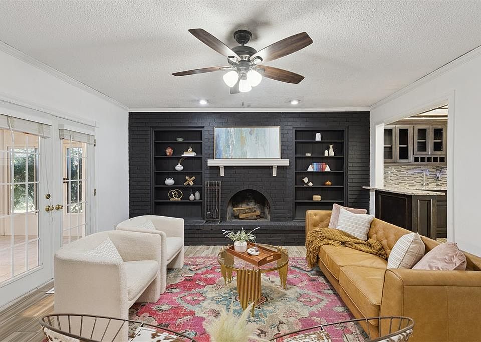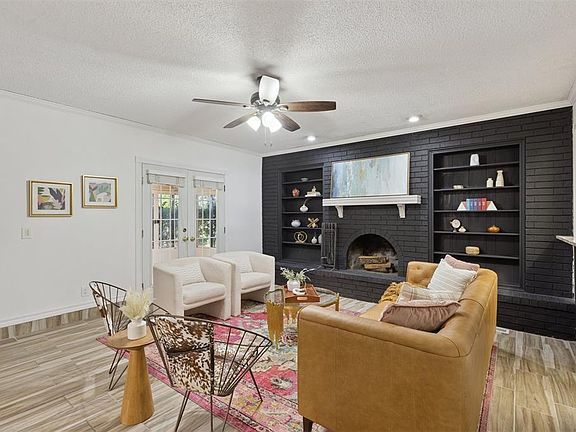 Welcome to 1225 SW 94th St! Tucked away on a quiet cul-de-sac in the established Sky Ranch neighborhood, this extraordinary 5-bedroom, 2.5-bath home offers over 2,700 sq. ft. of comfortable living space on an oversized lot shaded with mature trees. The charming front porch sets the tone, leading into a bright entryway that flows into a versatile living area, perfect as a formal dining room or second living space. Just beyond, a sunken family room with a cozy wood-burning brick fireplace invites you to relax, while French doors open to a cheerful finished sunroom filled with natural light.