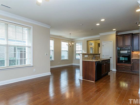 Beautiful, All Brick End Unit Townhome in Amberly! Move-in ready. Hardwoods on 1st fl. Huge kitchen w/ granite, cherry cabinets (glass doors), SS appl, bar, island, tile backsplash, gas cooktop. Spacious family rm w/ lots of windows & stone-surrounded fireplace. Separate dining rm. 1st-fl office could be used as 4th BR. Gorgeous master suite w/ tray ceiling, WIC, private balcony & luxury bath. Spacious BRs w/ large closets. Top schools! Walk to clubhouse & shopping. Close to major roads, RTP and ATT.