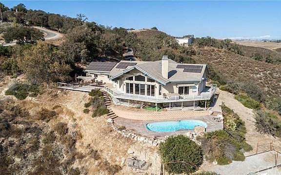 Are you ready to move to the Country? Privacy with one of the best possible views of Lake Nacimiento. Whether youre sitting on the huge deck, at the pool in front of this beautiful 2,645 +/- sq. ft. home, or roaming the 42 +/- acres - lake living cant get much better. With this much land Social Distancing is a pleasant way of life. This three-bedroom, three and a half bath home is designed with the amazing lake views in mind. There are even great views from the terrific kitchen with its Avonite counter tops, middle island, RO system, matching built-in refrigerator / freezer and walk-in pantry. The formal entryway and kitchen have quality solid wood flooring. Each guest bedroom has an en-suite bathroom. The 40 x 60 shop has 100 amp service and two nearby water storage tanks with room for your RV, boat, toys and projects. Eight covered horse stalls, covered hay storage, tack shed and covered trailer parking makes this property perfect for horse enthusiasts. Electric RV hookup, three car garage and great outdoor dining areas are ready to go. The solar system is owned and reduces the power bill to under $10 per month. The solar pool heater can heat the water to over 90 degrees. Custom electric metal storm shutters protect the huge view windows during heavy storms. (Spa in some photos has been removed and is not included with sale). The house is essentially single level living and the open floor plan - accessing the large deck and outdoor dining area - is perfect for entertaining.