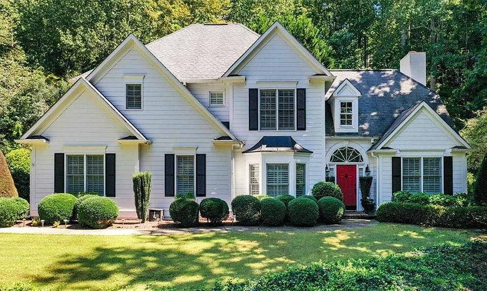 Discover the classic elegance of this exquisite traditional home, complete with custom built-in cabinetry, luxurious hardwood floors, plantation shutters, and a manicured formal garden. The updated kitchen features granite countertops, light decorator cabinetry and backsplash, stainless steel appliances, separate pantry, eat-in breakfast and a spacious counter height bar. The two-story Great room is accented by a stacked stone fireplace, double ceiling fan and lighted built-in bookshelves. Also on the first floor is a stunning dining room with wainscoting, a cozy library/office with built in bookshelves and window seat, a comfortable bedroom with adjacent full bath, and an inviting sunroom with vaulted ceiling. An oversized owner’s bedroom on the second floor offers a sitting area and a tranquil view to the private wooded backyard, paver patio, and garden. In the owner’s bath, you may relax in the jetted tub or expansive tiled shower. Outside, the patio is the perfect place for entertaining or grilling out. The details make this home special, and it has been well maintained and cared for. Located in beautiful Grove Park Subdivision which features larger lot sizes and many trees and is convenient to GA-400 and Lake Lanier. Amenities include a Jr. Olympic-sized pool and bathhouse, 2 lighted tennis/pickleball courts, basketball court, kids playground, covered pavilion, community grills, and fire pit. Prime location convenient to highly acclaimed Forsyth County schools and shopping areas. Come and see this gem for yourself!