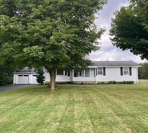 Charming ranch! Enjoy the country views of this 3 bedroom 1 1/2 bath ranch style home. This home features a paved driveway, new vinyl siding and replacement windows. Full basement with outside entry, and enclosed patio. Large deck off the 3 seasons back porch, along with a 50' x 24' basketball court in the back yard. Basement is partially finished with wood burning stove, perfect for entertaining! Over sized 2 car garage for all of your projects and storage needs. Affordably priced, call today to see this great home!
