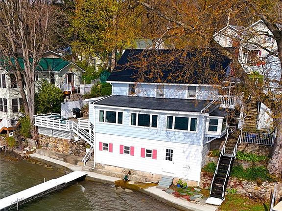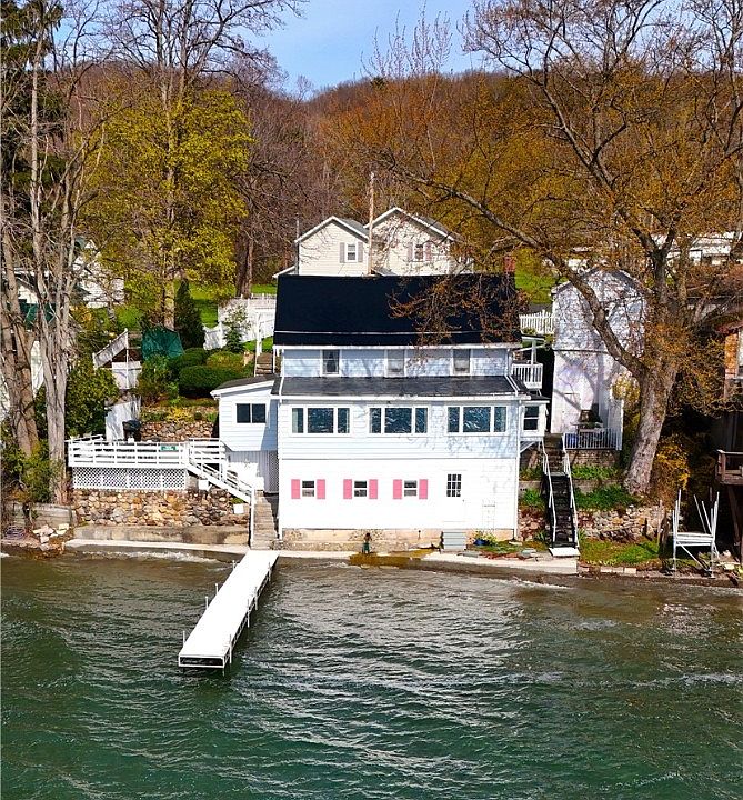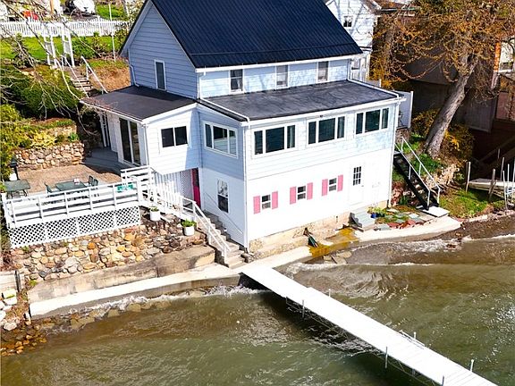 Welcome to this charming lakeside home! From the ample parking, past the lovely gardens, the garage, and the fenced yard, to the outdoor patios - this property does not disappoint. With 73 feet of frontage, you’ll have direct access to the dock and a gentle natural shale walk-in beach. The main level of the year-round home opens up to breathtaking views of the lake through the living and dining spaces. The kitchen, complete with ample storage, seamlessly connects to the convenient first-floor laundry and mud room - also with lake views. A half bath rounds out this level.
