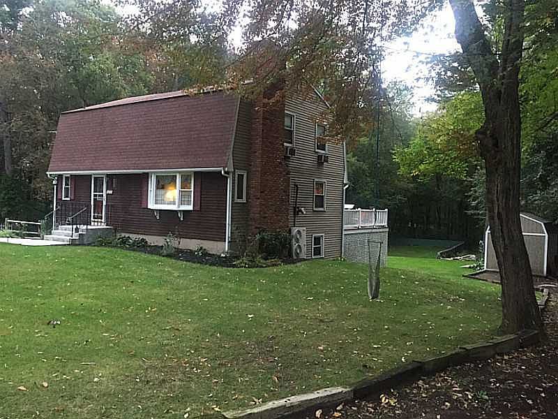 A beautiful 10 room, 3 bedroom 2 bath Gambrel home with a fireplace, a large bonus room and a two door/3 car garage located in Burrillville, RI The home features an open floor plan, a deck, a large shed, a tree house, and a lawn irrigation system.