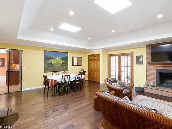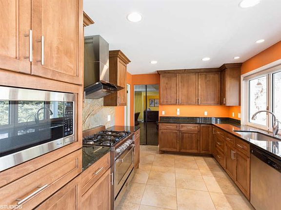 Gorgeous Remodeled BRICK RANCH sits on a beautiful wooded lot in very desirable Schilling Subdivision. This house is clean, cozy and yet contemporary. A bright open SUNROOM welcomes you as you enter w/French doors connecting an over-sized living and dining room with HAND SCRAPED HARDWOOD FLOOR, TREYED CEILING WITH SKYLIGHTS and BRICK FIREPLACE. Then enter into a GOURMET KITCHEN with COMMERCIAL GRADE SS APPLIANCES, GRANITE COUNTERTOP & QUARTZITE BACKSPLASH, SOFT CLOSE CABINETS with custom pullout features and walk-in pantry. NANAWALL DOOR & WINDOW transitions this home-chef's dream kitchen into a professionally landscaped backyard and outdoor retreat. The large Master Bedroom has HARDWOOD FLOORS, large walk-in closet with CUSTOM ORGANIZERS and REMODELED BATH with LUSTROLITE shower enclosure. Full basement which is finished w/2nd family room with wet bar, workshop, laundry room with shower & 4th bedroom (or office). NEW ROOF Nov 2017, NEW A/C 2015.