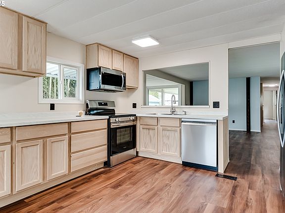Welcome to 1225 W 10th Ave Unit 11 at Scandia Park in Junction City! This beautifully remodeled 2-bedroom, 1-bath manufactured home is located in a highly desirable 55+ park with a community rec hall for residents to enjoy. The home features brand-new flooring, fresh interior paint, new cabinets and countertops, and all-new stainless steel electric appliances—including a washer and dryer. The fully updated bathroom boasts a modern walk-in shower for added convenience. Enjoy year-round comfort with central heating and air. New windows provide great natural light, and updated light fixtures throughout include a night-light feature for added ambiance. Buyers must be park approved. Don’t miss this move-in-ready gem—schedule your tour today!