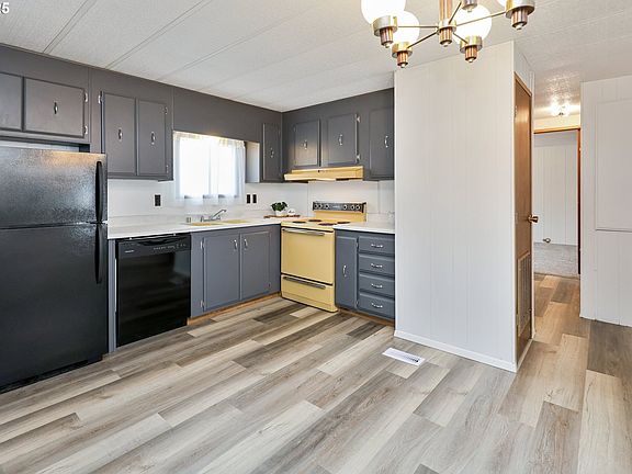 Beautifully remodeled 2-bedroom, 2-bath manufactured home located in the desirable 55+ community of Scandia Village in Junction City. This home features numerous updates, including fresh interior paint, new carpet, new luxury vinyl plank flooring, and new countertops. The kitchen and dining room are combined, with built-in storage for added convenience. The oversized primary bedroom offers ample closet space and a private ensuite bathroom. Additionally, there is an indoor laundry area with storage cupboards. Please note that buyers must be approved by the park prior to closing. Schedule a showing today!