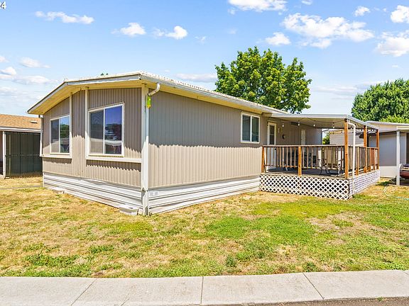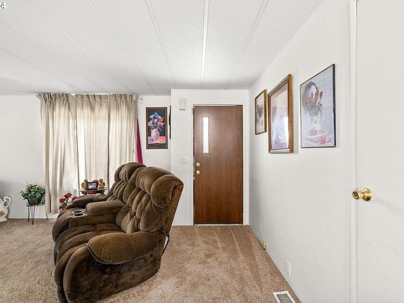 Great small home in a friendly 55+ park in Junction City! Come see this recently updated corner lot home and imagine all of possibilities. Dual parking covered carport, dual-pane vinyl windows, A/C and recent paint and flooring. This just might fit the bill for your retirement plans!