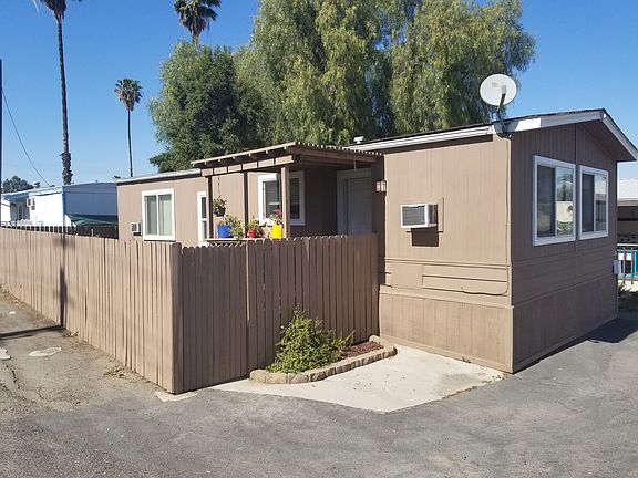 ***Thank you for your interest, currently in Escrow*** NEW ROOF AND GUTTERS INSTALLED IN 2019. This mobile home is 2 bedroom, 1.5 bath with 800 square feet of living space with good sized back yard enclosed by a 6ft privacy fence. The mobile home is a 1979 Fuqua with updates done in 2009, 2013 & 2019. The home has been updated with all new sub-flooring, aqua pex plumbing, a tank-less hot water heater, new front & back porches, new vinyl windows, french doors & remodeled kitchen with new cabinetry. The home comes with a vaulted living room ceiling & lots of natural light, a central exhaust fan (great for summer), wall mounted AC's in both bedrooms & living room, built-in laundry area, kitchen featuring new gas stove, range hood and garbage disposal as well as a dishwasher. Additional features of the home include several fruit trees in the back yard, small storage shed in rear, 2 external storage closets and an irrigation/drip system to water the yard. The mobile home is located within a family/pet friendly park that features some of the lowest space rent in Corona ($650 plus utilities, water included) with a park shared pool & laundry room. The home is located on the front corner which grants more space & privacy then average with both off-street & on-street parking available. Any potential buyer would need to be pre-approved by park management. Home is for sale by owner.