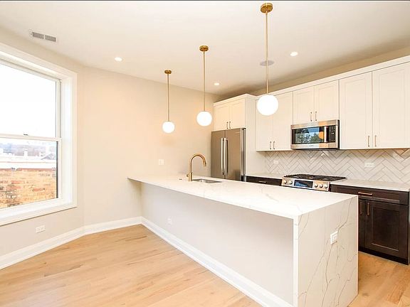 Newly rehabbed and modernized apartment available in the heart of Wrigleville. Located two blocks east of Southport Corridor and 2 blocks west of Wrigley Field. This 1400 square foot 2 bed / 2 bath simplex is an embodiment of modern sophistication: Open concept floorplan with large kitchen peninsula and modern hanging light fixtures Huge primary bedroom that can fit king sized bed, walk-in closet and ensuite bathroom with enormous double vanity Spacious walk-in shower with multiple spray heads and bench Quartz kitchen and bathroom countertops Three private outdoor spaces for taking in the fresh air including private rooftop deck with unobstructed 360 degree views!! Built-in ceiling speakers for playing music Stainless-Steel appliances including Gas range, Range hood, Refrigerator, Dishwasher, Built-in Microwave, Full Size Washer & Dryer. Luxury Engineered Wide-Plank Flooring, Porcelain Tile In Bathrooms White Cabinetry with Black Hardware and Fixtures Soft Close Cabinets and Drawers Oversize Closets with Custom, Built-Out Organizers Recessed High-Efficiency LED Lighting Dog and cat friendly High Efficiency HVAC System w/Humidifier Professionally managed by Root Realty proudly serving Chicago since 1983 $75 application fee per adult. $-0- security deposit. One-time non-refundable move-in fee of $700 base fee plus $200 per leased occupant. Pet Fees Dogs are $500 per. If two dogs; total fee is $1000. Cats are $350 for one cat, OR. $600 for 2 cats -Applications will be evaluated based on credit history, verifiable household income, rental history, eviction/foreclosure history, references. -No registered sex offenders or persons under a current child sex offender residency restriction. -Applicants reserve the right to dispute inaccuracies relevant to criminal history and provide evidence of rehabilitation and/or mitigating factors. This property is professionally managed by: Root Realty, Inc. Ensuite Bathroom Washer/Dryer In Unit