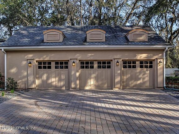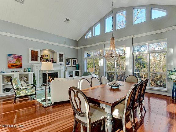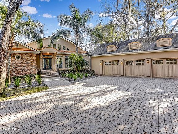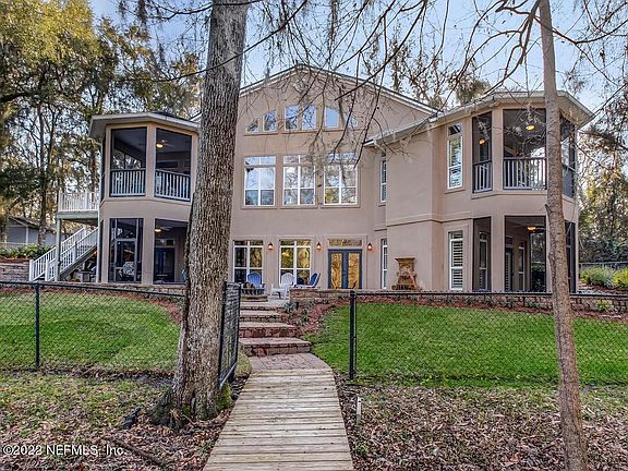 Totally Unique. This custom-built waterfront home on 1.78 acres is like no other. Not just for its craftsmanship but for the location/close proximity to most everything while feeling like you're coming home to your private country estate home. Circular brick paver driveway mingles with mature deciduous trees. Professionally landscaped yard, stacked stone and metal roofing accent this energy efficient home. As you enter, you're welcomed with rich hardwood floors, vaulted tongue and groove wood gambrel ceiling and breathtaking walls of custom windows. The wood work, finishes and details in this home in incredible, along w/ all the upgrades. Stunning kitchen is equipped w/ Bosch appliance, pot drawers, wine fridge, granite counter tops and cook out deck. Enjoy the property's scenery from one of the 4 screened in balconies or relax in the extended pavered patio over-looking the dock and water. A 600+ SF framed out flex room over the 3-car garage can be finished as a guest suite, theatre/game room, office or major storage! Home is on a bluff overlooking the navigable Mill Creek which flows into the St. Johns River. Zoned for top rated St. Johns County Schools.