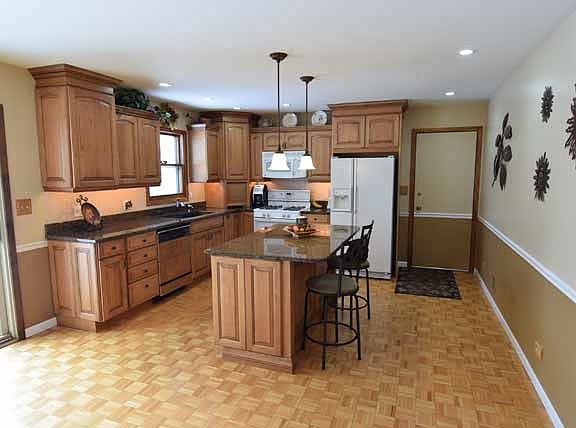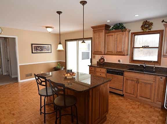 Perfect location for this sprawling 4 bedroom, 2 bath, 2.5 car garage home. Spacious eat-in updated kitchen with island/lots of cabinets, open floor plan, freshly painted, master bedroom with private updated bath, finished basement with fireplace/rec room/craft room/4th bedroom, new furnace, new entryway and windows, newer AC, HWH, and roof, patio to enjoy the private secluded yard. With-in walking distance to bike/walking path, boat launch for canoeing, water sports, etc. Great east side location.