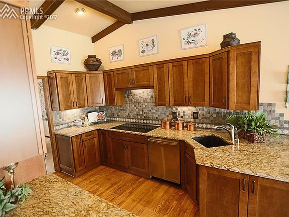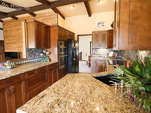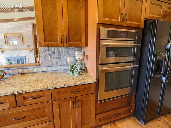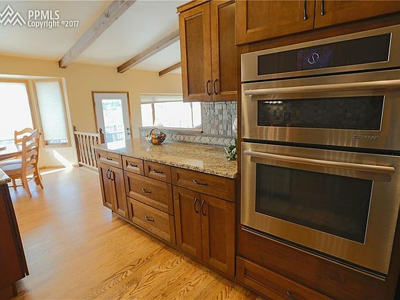 Finally! A highly sought-after & hard to find WEST-facing ridge lot in a premier, luxury area! Incredible, unobstructed views to Pikes Peak, full mountain range & Colo Spgs Beautiful views to lush vegetation w/nature & wildlife as your neighbor - Privacy & tranquility from every window Completely remodeled kitchen w/new cabinets, new slab granite counters, newly refinished wood floor, & new, natural stone backsplash is open to the adjoining family room w/fireplace & walkout to expansive, composite deck -Continued.... Enjoy the views from the breakfast nook - Convenient laundry on the main w/cabinets, folding counter & adjacent kitchen pantry Elegant, formal dining room w/bay window & plenty of room for a hutch or buffet Formal living room enjoys proximity of dining room & has mountain views - Large master suite w/custom stone fireplace, two closets & walkout to private deck & more incredible views in several directions Guest bedroom & another office/bedroom on main Huge, second family room w/custom rock fireplace & wet bar in walk out basement enjoys bountiful natural light w/more magnificent views - Covered patio - Hot tub is nestled into the scrub oak enjoys privacy & more views Three more spacious bedrooms in basement & all with full views - Great storage in basement - Two and a half car garage District 20 schools & nearby parks offer plenty of recreational opportunities One of the very nicest luxury neighborhoods in Colorado Springs with easy access to all parts of Colorado Springs - Get ready to be impressed.
