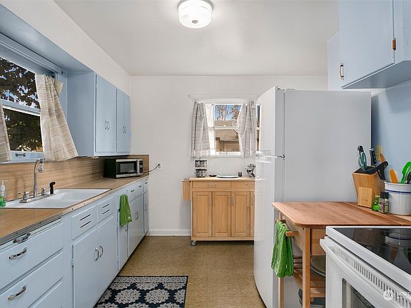 Welcome home to this adorable two bedroom one bath home in North Burien. Conveniently located minutes to downtown Burien and/or White Center for ample shopping and restaurant options. Quick and easy access to Seatac Airport and freeways for a short commute. Enter the home to beautiful original hardwood floors throughout. Spacious living room and kitchen made for entertaining and your inner chef. Every room in this home gets great light. Large level 6860 square foot lot offering endless possibilities for your green thumb or furry friends! Driveway for easy off street parking. Move in ready!