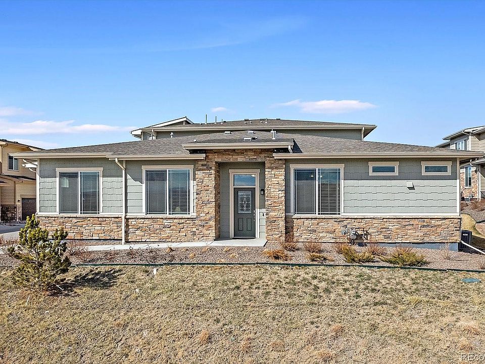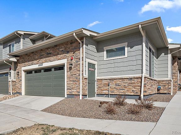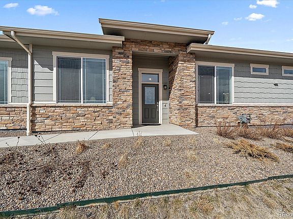 Incredible new price. Gorgeous like new townhome. Sellers only lives in townhome part time. Amazing views of Pikes Peak and mountains. This end unit is flooded with light, has a very open floor plan with 10" ceilings and luxury plank vinyl flooring throughout. The stunning kitchen has 42" cabinets with soft close draws and pull out shelves, large raised island/eating bar, Frigidaire Gallery stainless steel appliances including gas range, pantry with pull outs, under sink water filter system, and granite counters. The great room is highlighted with custom built ins and is very spacious. Step right outside from here onto your covered patio situated on a greenbelt. The primary bedroom is a great size and features a luxurious bath with large shower with bench seat, raised granite vanity with double sinks, soft close draws and floor with large tiles. The study is a great flex space to use as you need. The secondary bedroom and bath are awesome with full bath highlighted with raised leathered granite vanity and tile floor. Other amenities include ECOBEE smart home thermostat, whole house tv antenna in the attic, Simpli Safehouse alarm and security system, ADA compliant entry, and large crawl space. Enjoy the park/playground and community pool. What a great location only 2 miles to Parker, close to Cherry Creek trail, shopping and dining. Easy access to I25 and C470. Only 30 minutes to DIA.