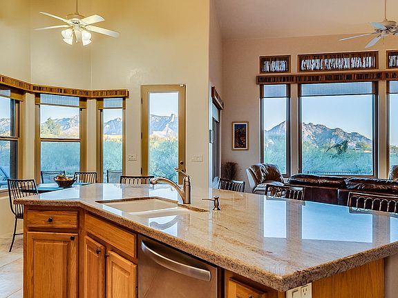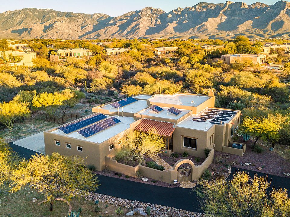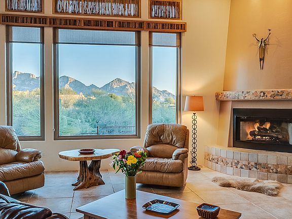 Pride of ownership and outstanding craftsmanship throughout this semi custom home in Oro Valley. From the inviting courtyard to an entry that pulls you to the great room to experience the comfort and stunning panoramic view of the Catalina Mountains. Almost an acre, feels like 5 as you enjoy the calm and privacy of the rear patio area, perfect for entertaining. Newer Millgard windows throughout with lifetime guarantee. Pool solar coils on roof. Oversize garage with lots of storage.Exterior painted and lift station rebuilt, 2019. TEP solar panels offering 25 year TEP price guaranty. 7 ceiling fans, indoor gas fireplace. Central vac and recirculating hot water system. Surround sound in great room and one of three patios. 14' ceiling in great room, 10' or 11' in other rooms. Must see!
